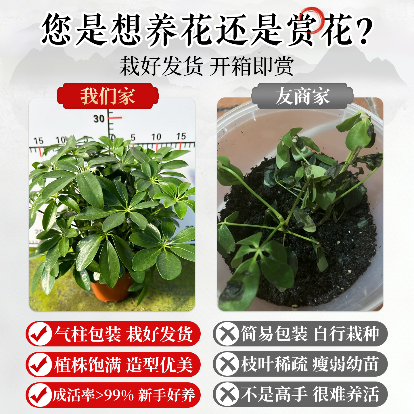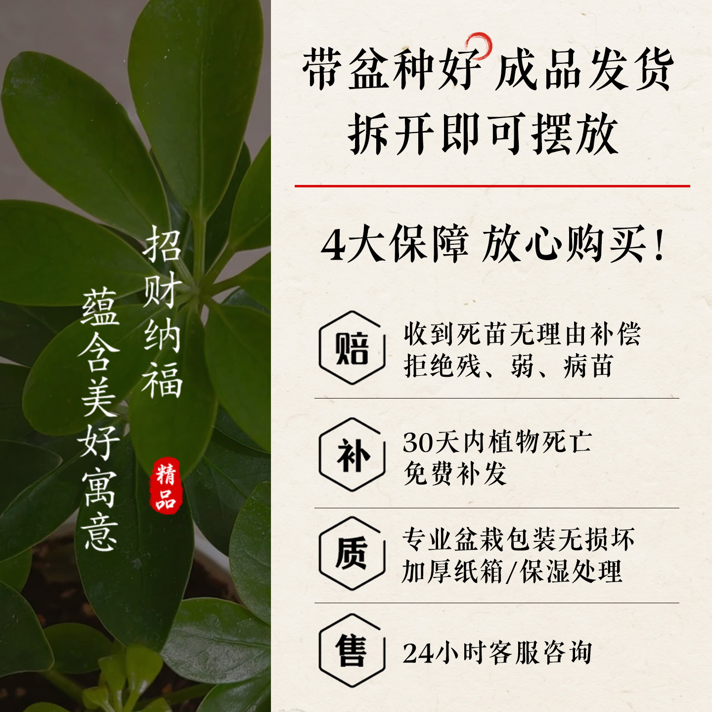 鸭脚木盆栽八方来财客厅办公室桌面绿植七叶莲新中式盆景好养植物