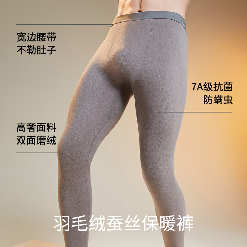 羊毛蚕丝男士秋裤发热加厚加绒德保暖裤无痕薄款衬裤打底线裤冬季