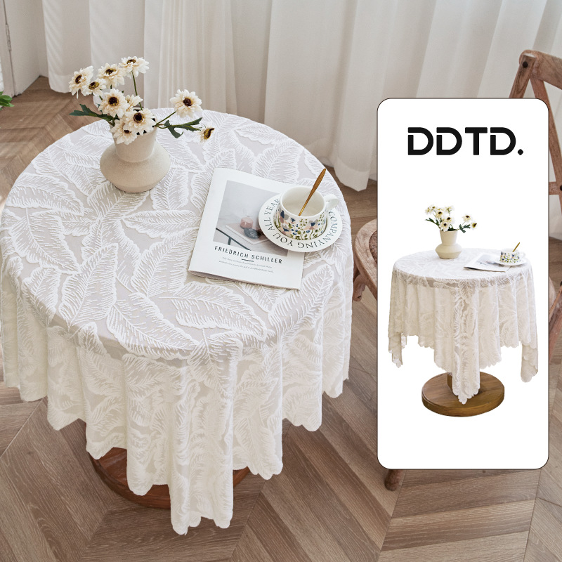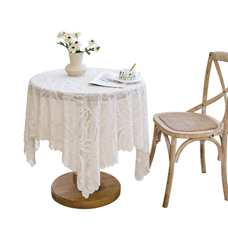 白色蕾丝茶几布 ins风方桌餐桌布圆形小圆桌冰箱防尘床头柜盖布巾