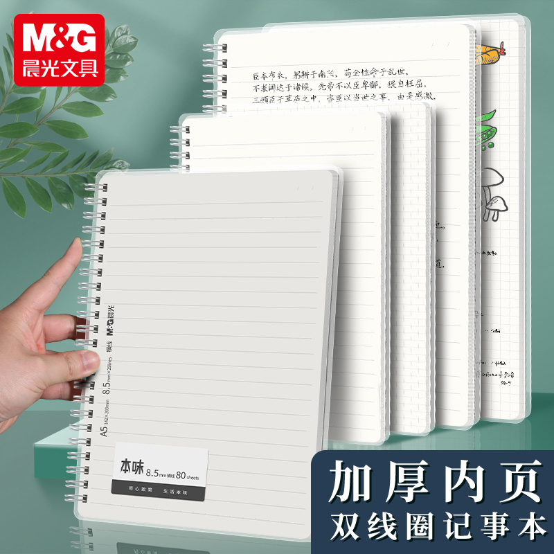 晨光本味B5PP双线圈80页横线本方格本高颜值记账本简约纪念册笔记本便签本线圈笔记本本子加厚错题本小学生用