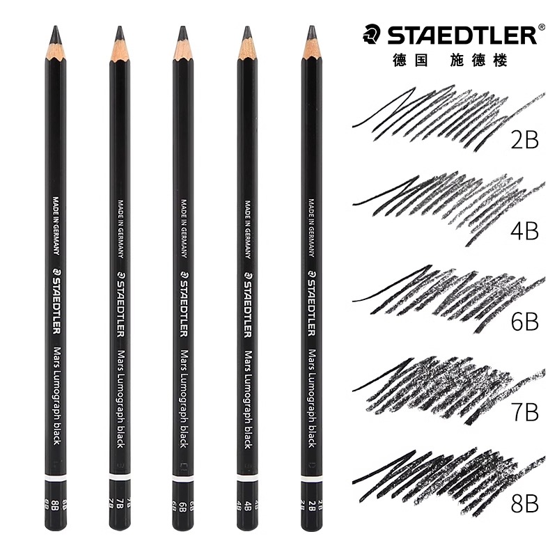 德国施德楼100B绘图绘画素描铅笔炭笔4B8B铅笔速写含碳美术艺考联考绘画用笔2h6b8b炭笔软中硬绘图2比4b美术