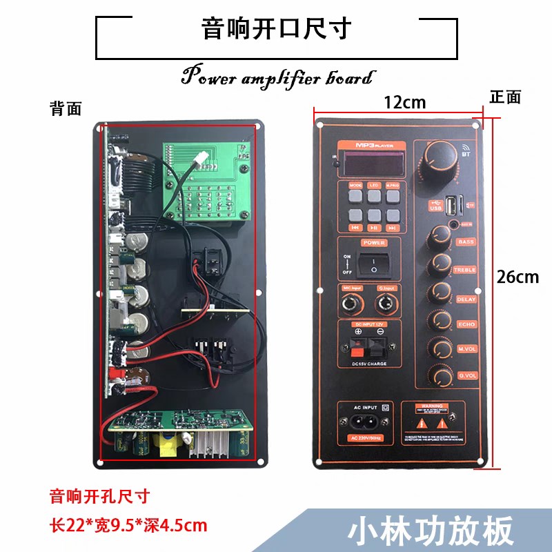 大功率双声道蓝牙功放板改装户外x拉杆音响主板12V电瓶220充电功