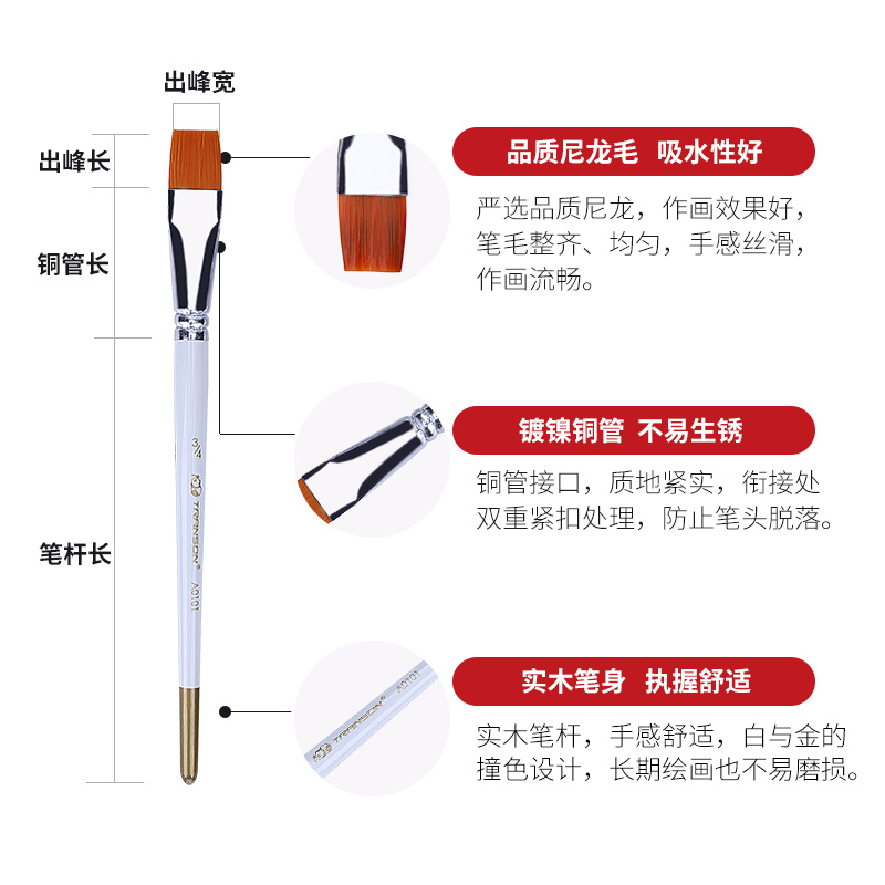 中盛画材水彩水粉油画笔初学者颜料笔丙烯尼龙美术多笔头短杆画笔