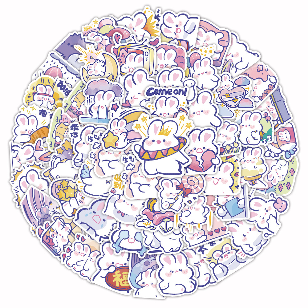 60张原创胡萝贝儿贴纸卡通可爱兔子装饰行李箱手账手机壳小贴画