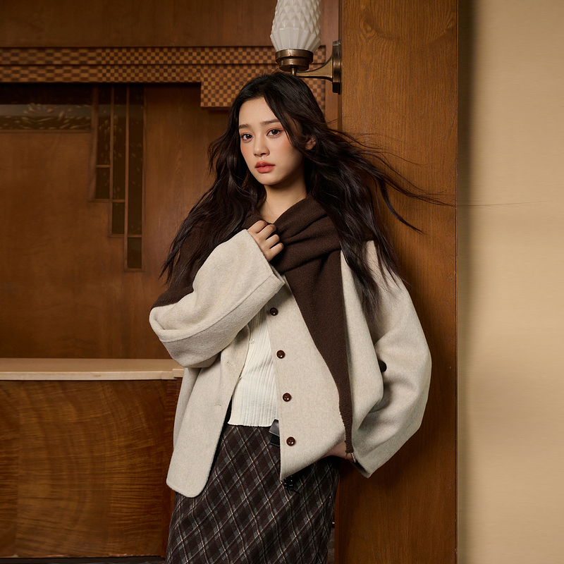 记忆的起点双面呢羊毛大衣2025冬季新款韩版短款外套女69AD74022
