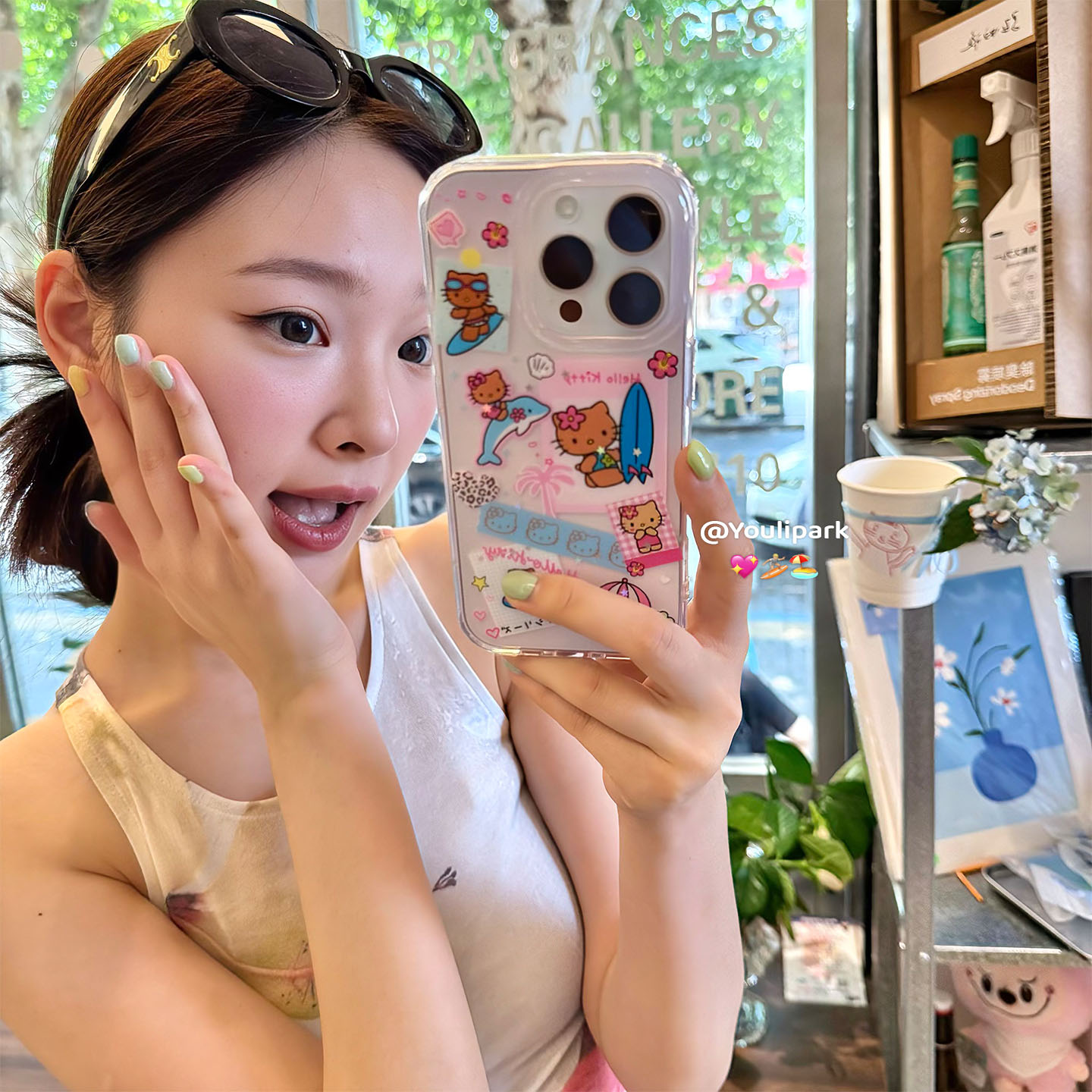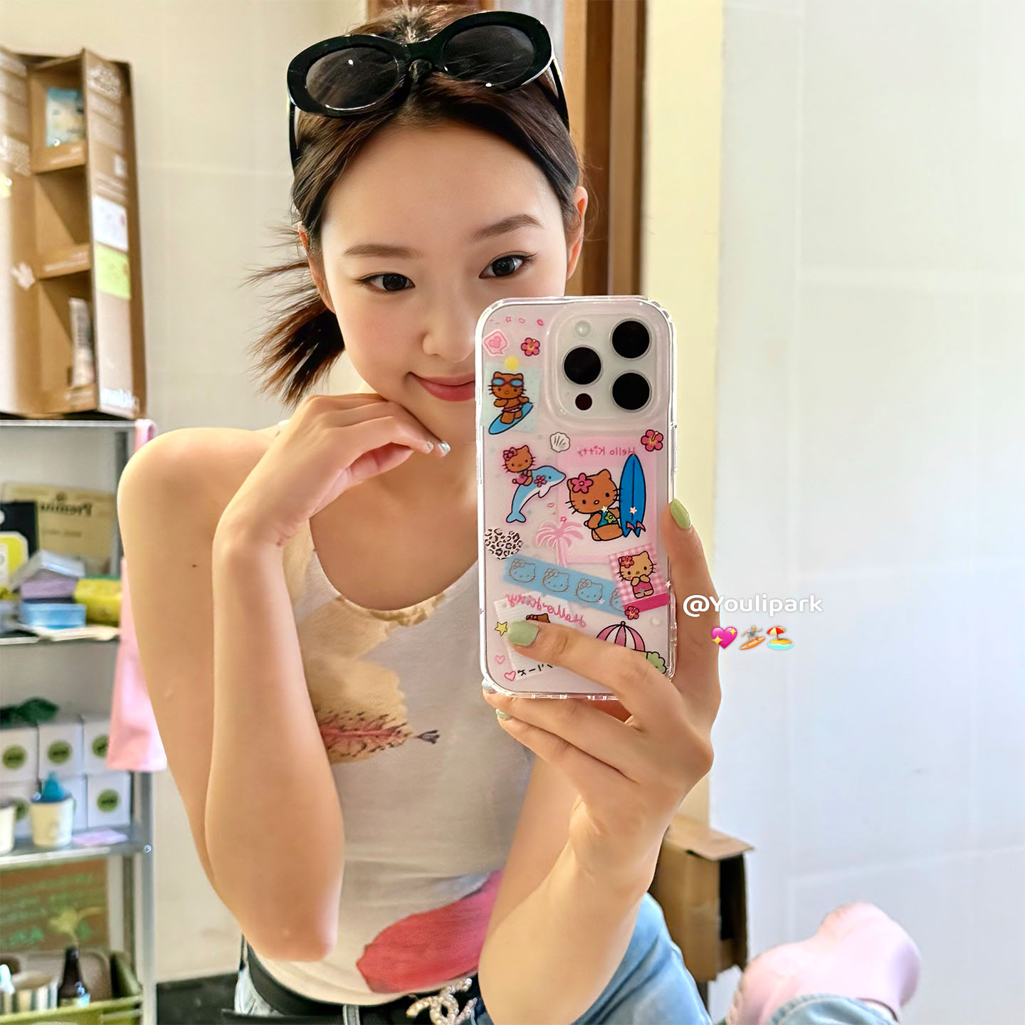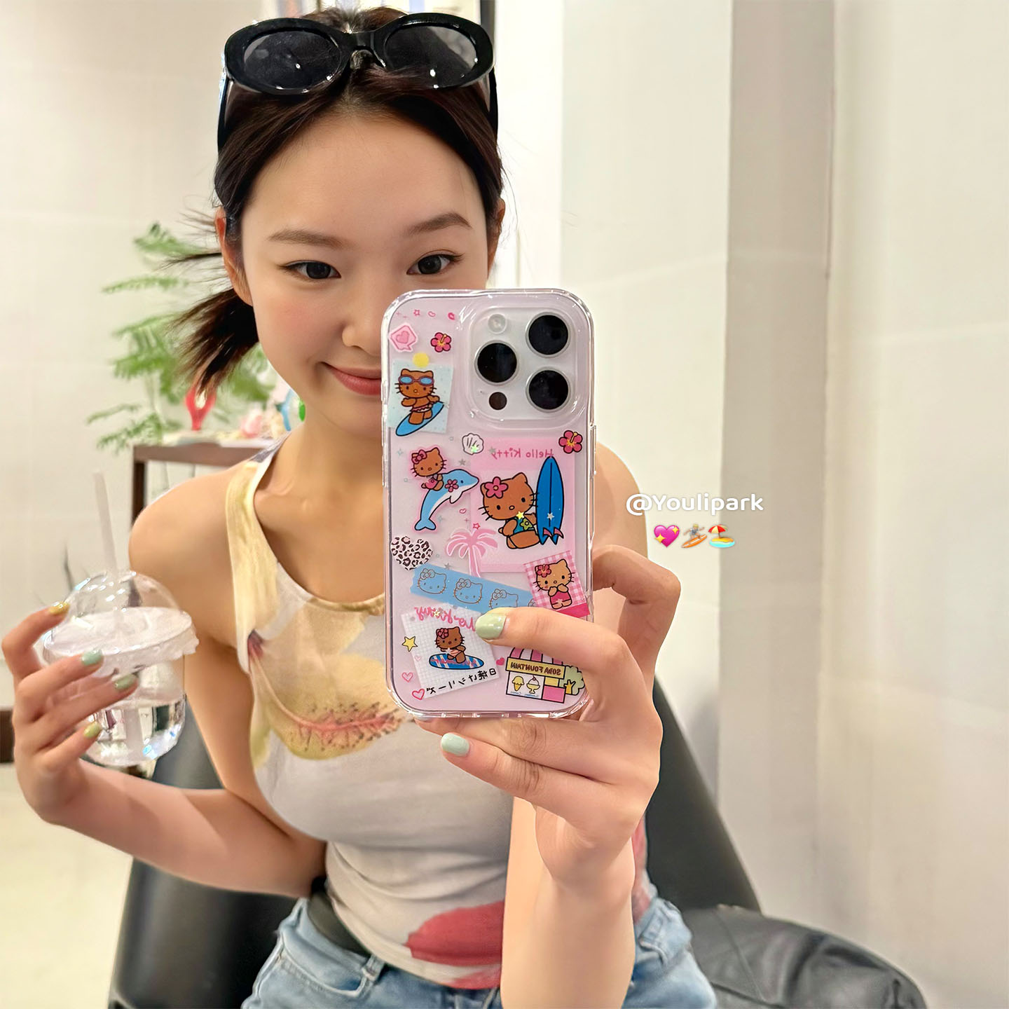 由里公园ins夏日可爱少女冲浪黑皮猫咪15适用17pro苹果17ProMax手机壳iPhone16全包17新款14Promax保护套13韩
