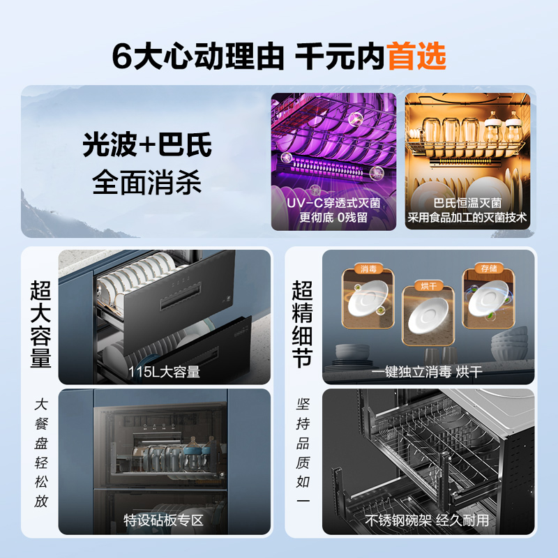 【性价比】海尔115L消毒柜烘干一体碗柜家用小型厨房嵌入式12LCS