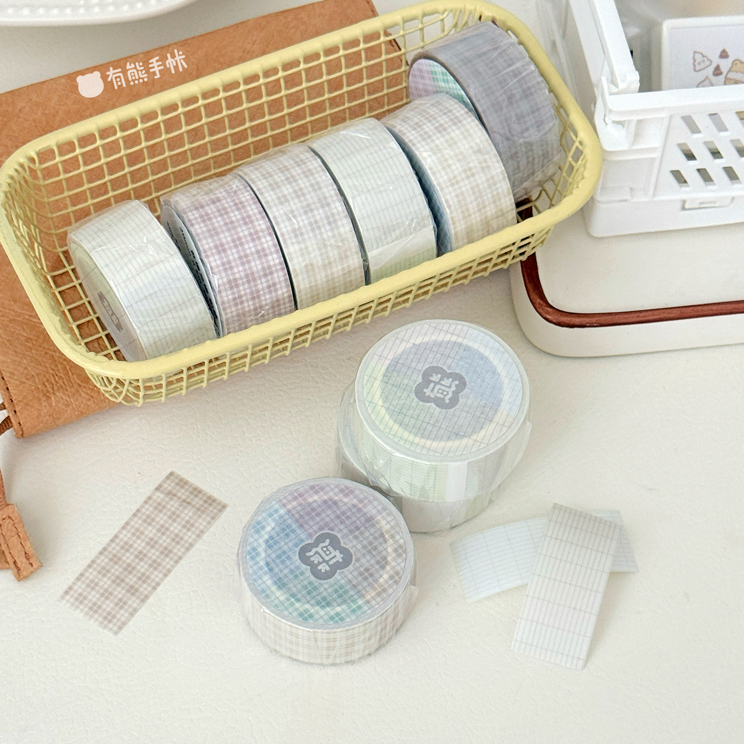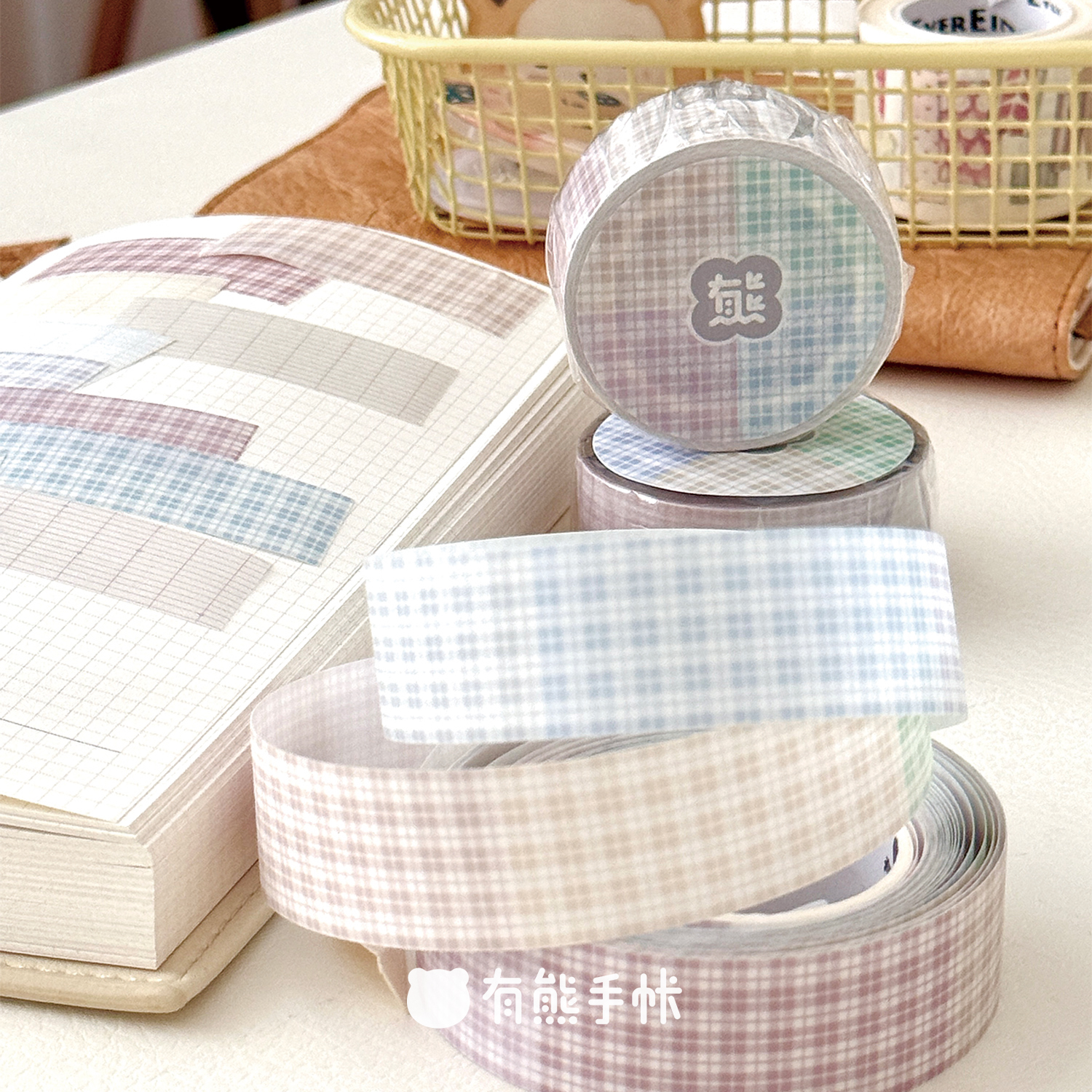 有熊很多格纹系列 苏格兰格 法文格基础拉条贴纸卷手帐账拼贴胶带
