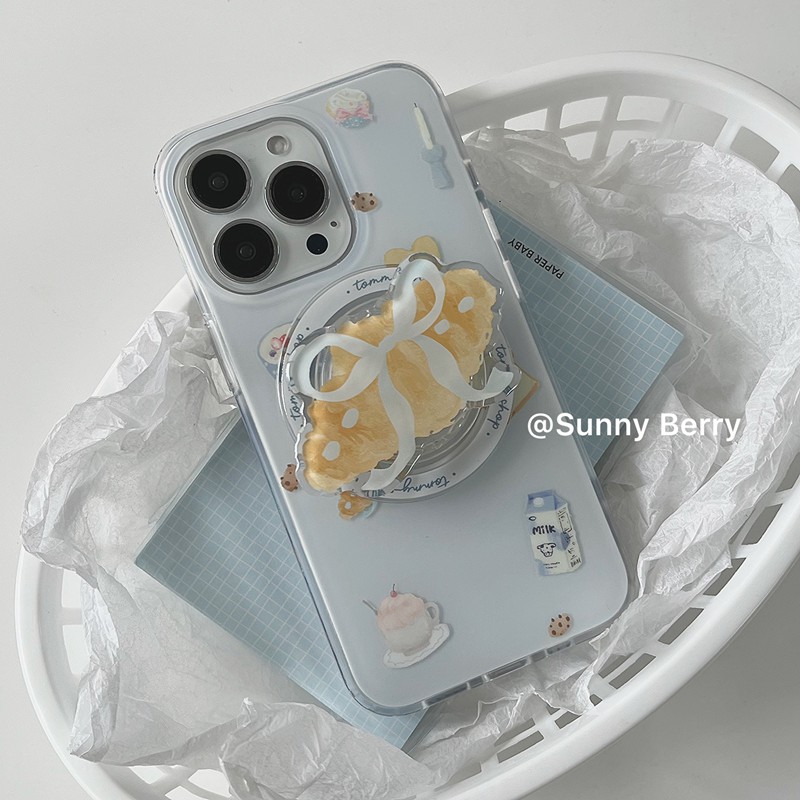 向日的浆果ins小众奶蓝可爱甜点面包蝴蝶结可颂磁吸支架适用苹果17proMax手机壳iphone16pro/15/14保护套防摔
