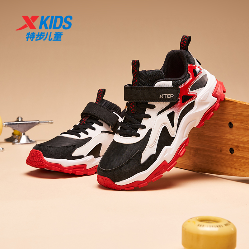 特步儿童2025新款冬季皮面防滑运动鞋加绒二棉棉鞋子中大童男童鞋