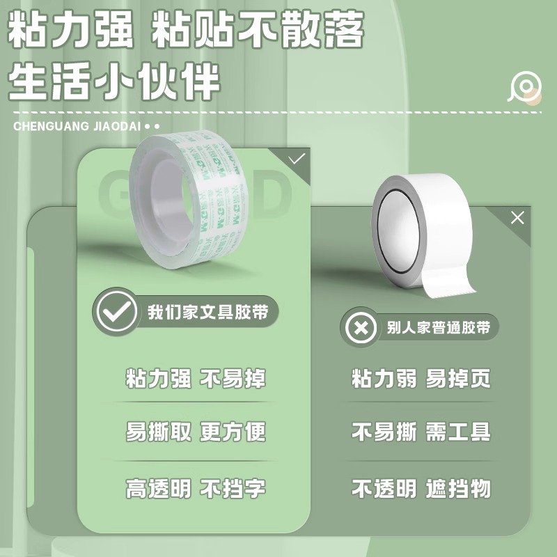 5卷双面胶带高粘度强力固定手工纸学生两面diy手撕超薄透明贴纸