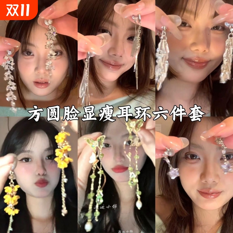 美神降临!没有耳洞也能戴的千金风耳夹长款水钻显脸瘦流苏耳饰女