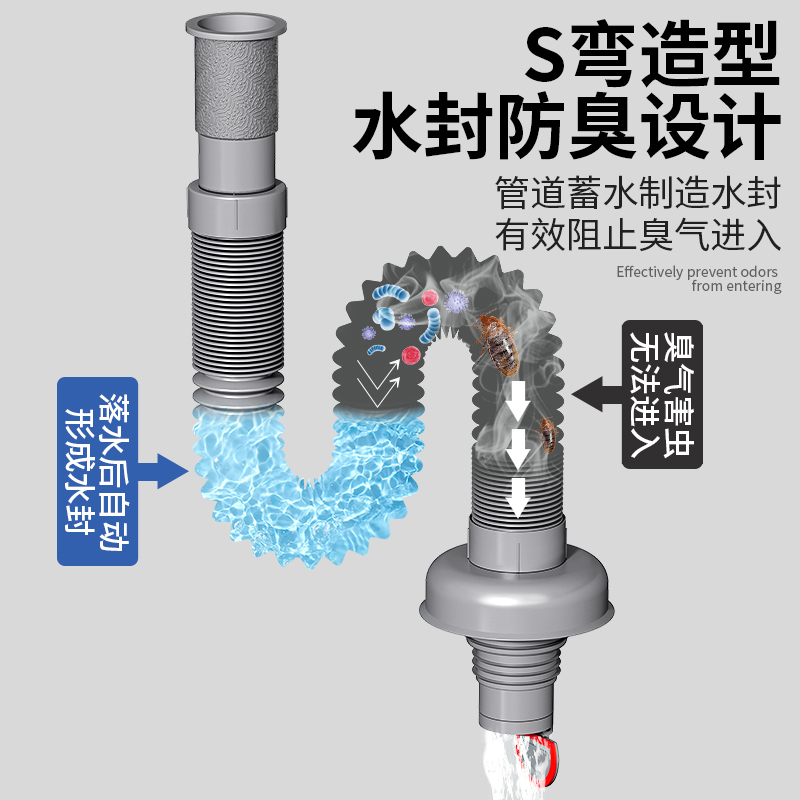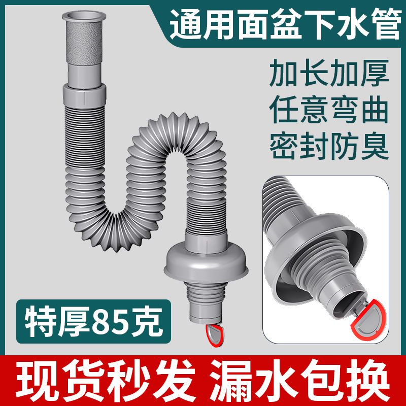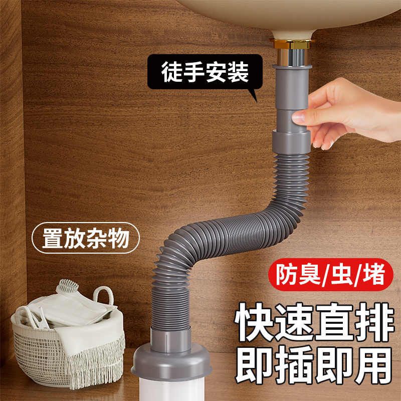 可伸缩水槽面盆排水管洗手间软管洗脸盆池拖把接口下面弯曲通用