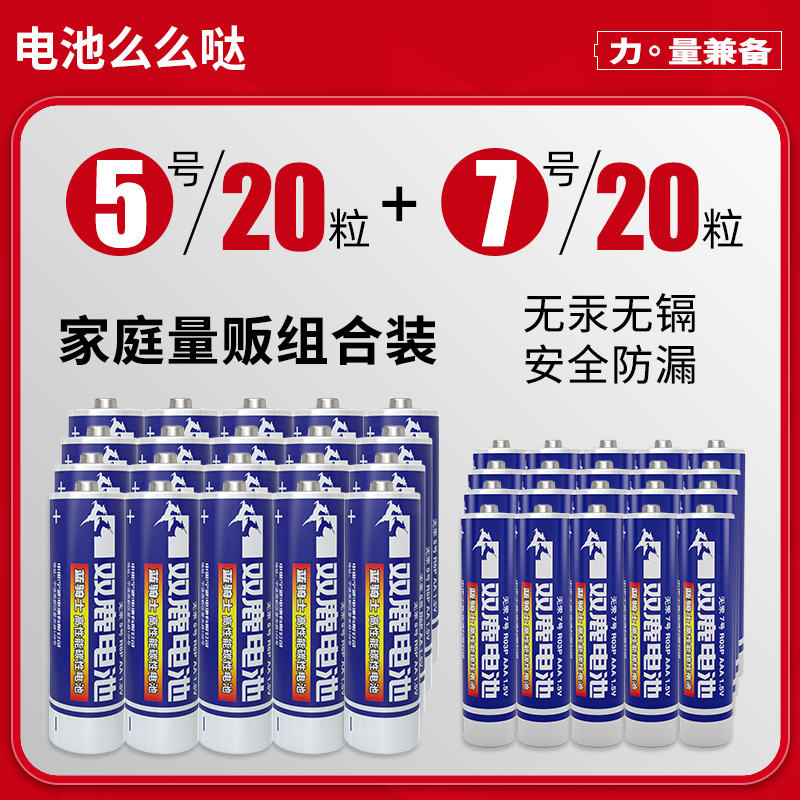 双鹿电池5号碳性五号AA空调遥控器玩具可混搭7号七号电池40节包邮
