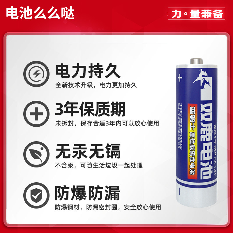双鹿5号电子锁指纹锁适用密码锁电池1.5V碱性5号电池防盗门智能门锁儿童玩具遥控器AA五号干电池8节装不漏液