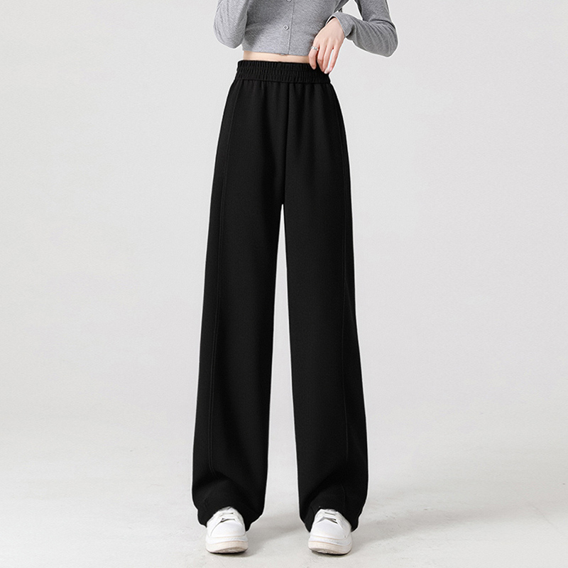 MissWiss直筒裤子女秋季2025新款显瘦小个子黑色阔腿休闲运动长裤