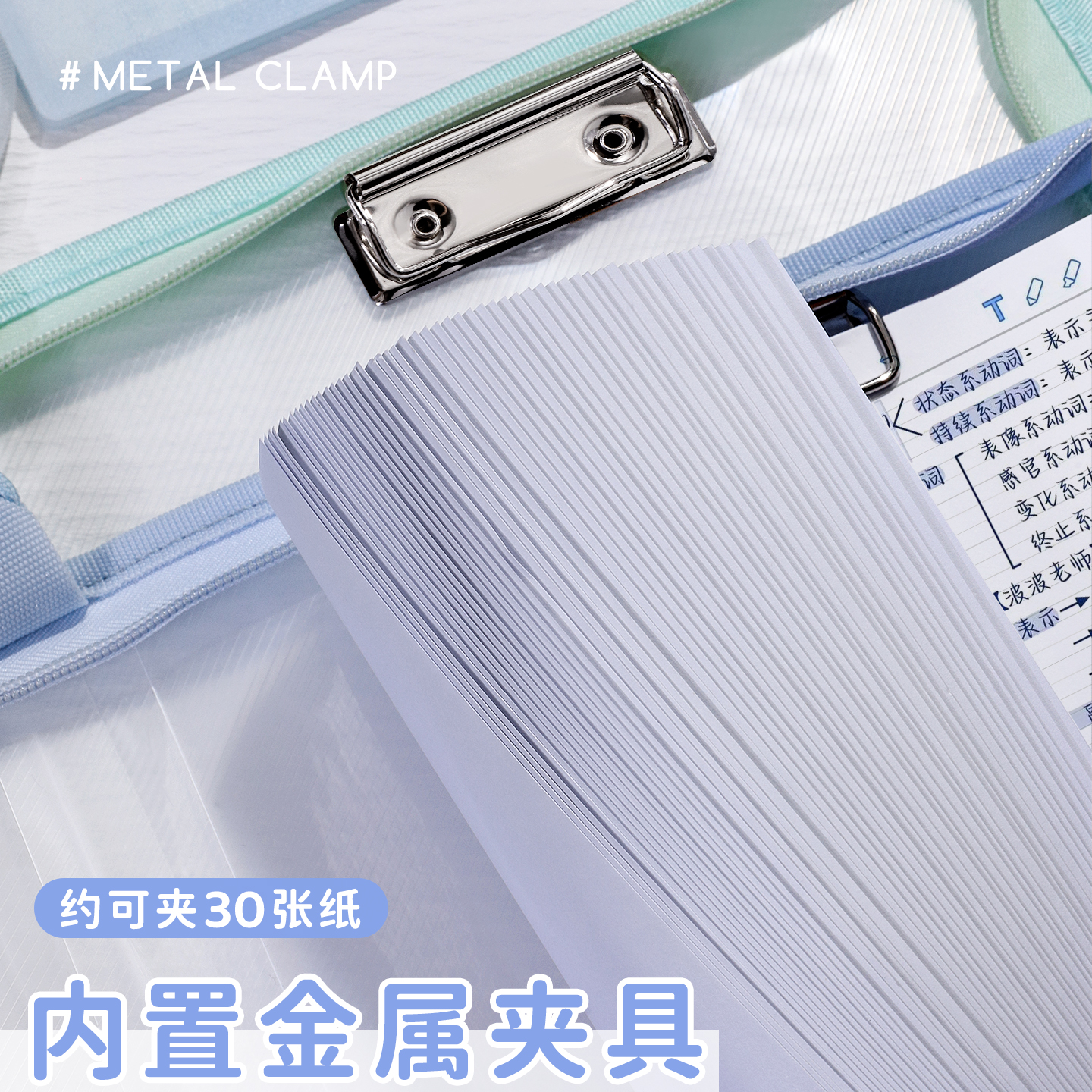 大容量拉链文件袋L型大开口手提袋A4初高中生科目分类袋试卷资料收纳袋高颜值防水透明拎书袋可进考场作业袋
