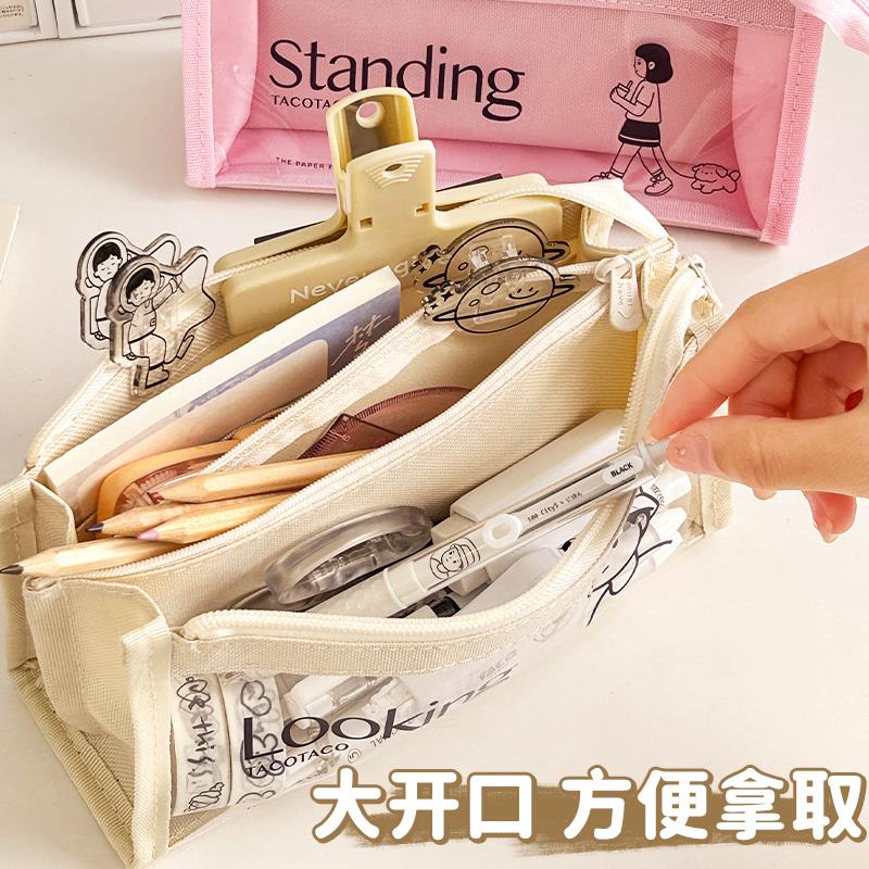 TacoTaco大容量透明笔袋多层文具袋男生初中等专业学校用女孩子日