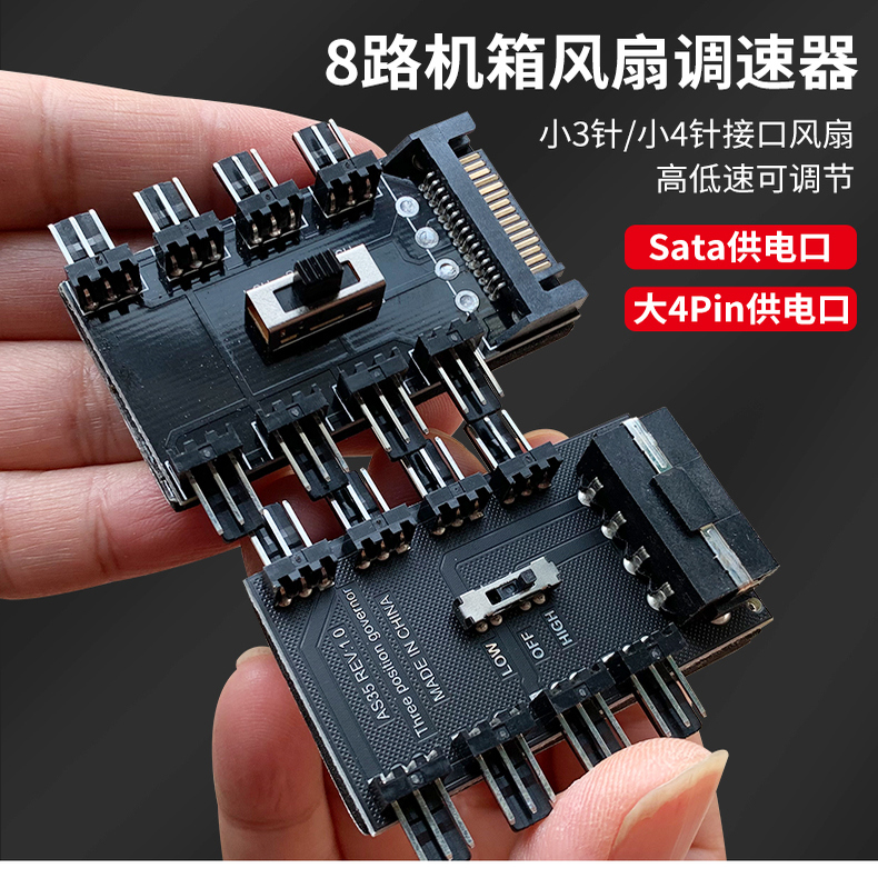 电脑机箱风扇调速器集线器3pin_4pin无级变速散热器降速度控制器