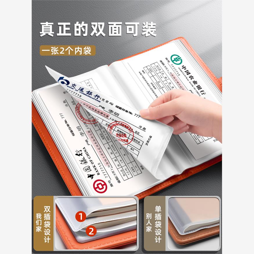 存单收纳本纸质银行票据存单夹存折定期存款单票夹收纳本多功能支票收纳册发票收纳卡包存钱定型定做存折本