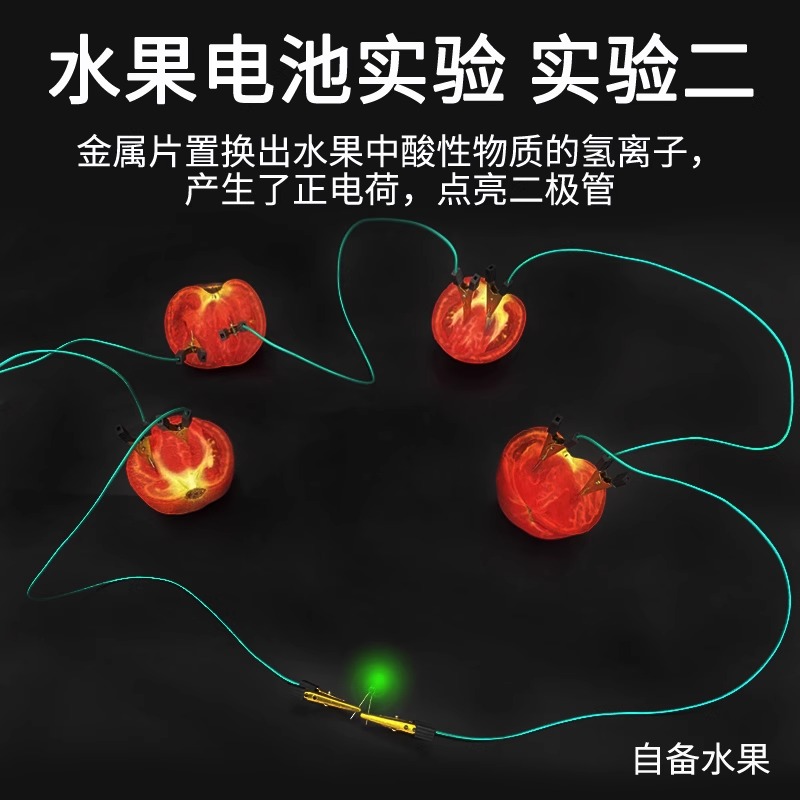 小学科学实验水果电池水果发电实验演示器DIY盐水土豆泥电池led初中物理器材电极锌片铜电极组装片材料自制作