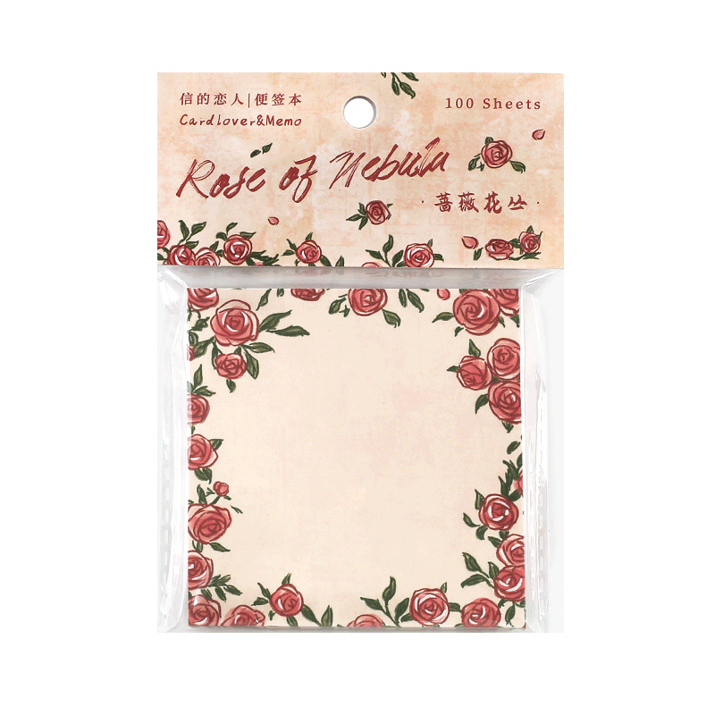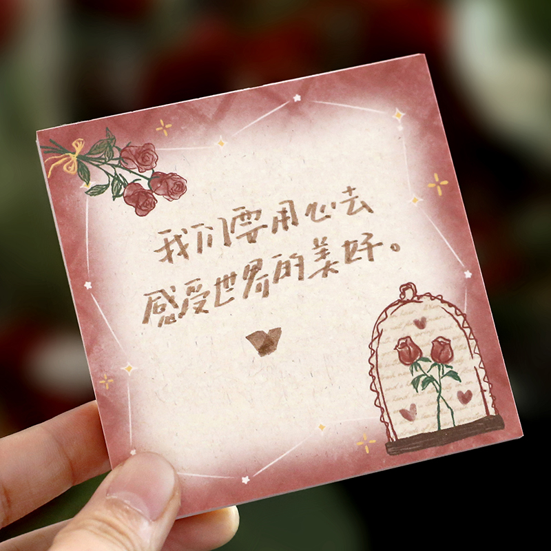 复古花卉浪漫蔷薇玫瑰主题便签100张星河玫瑰之诗收掌柜素材纸拼贴N次贴办公文具便条纸留言条便利贴蝴蝶
