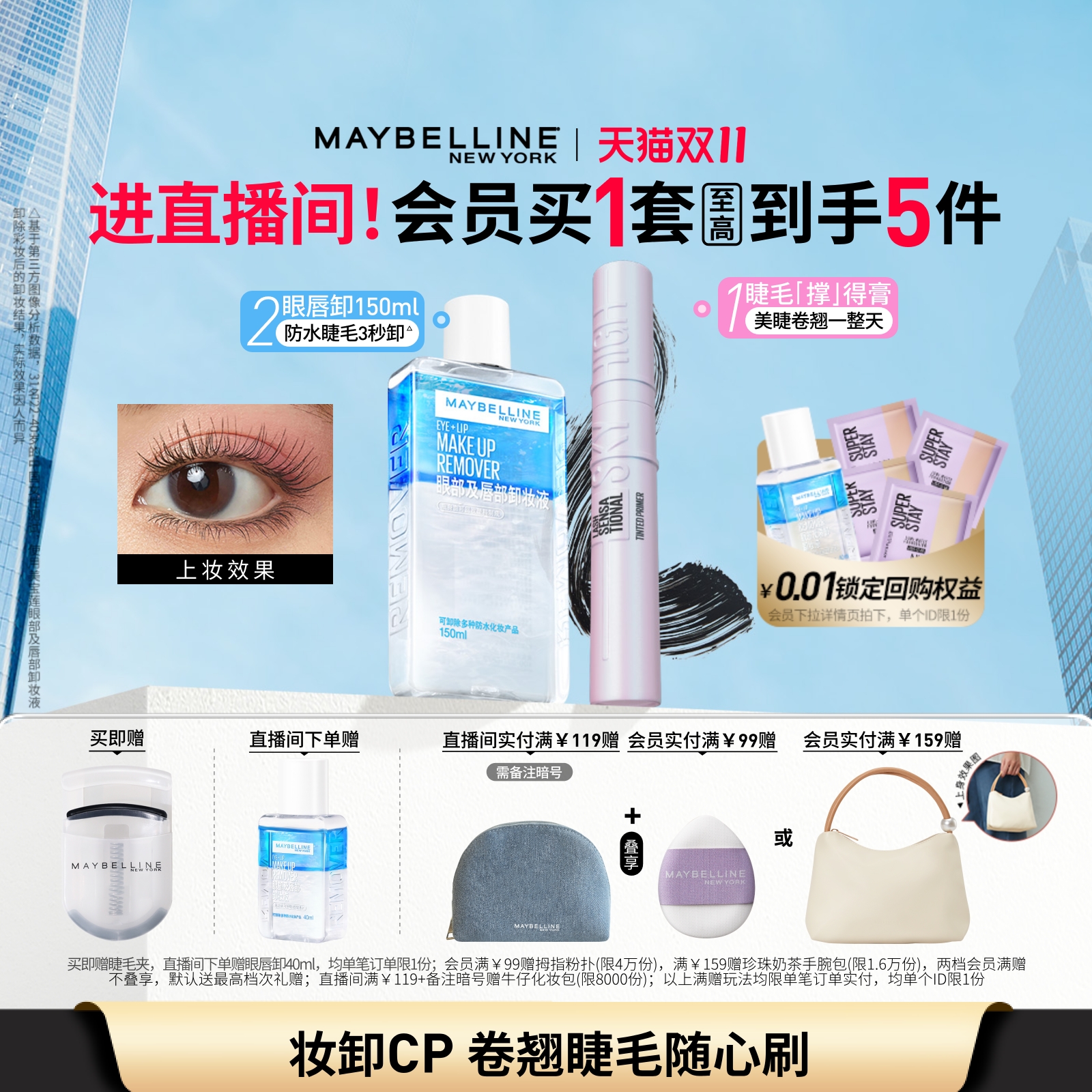 【双11大促】美宝莲纽约睫毛撑得膏冲天翘睫毛膏纤长卷翘防水Z