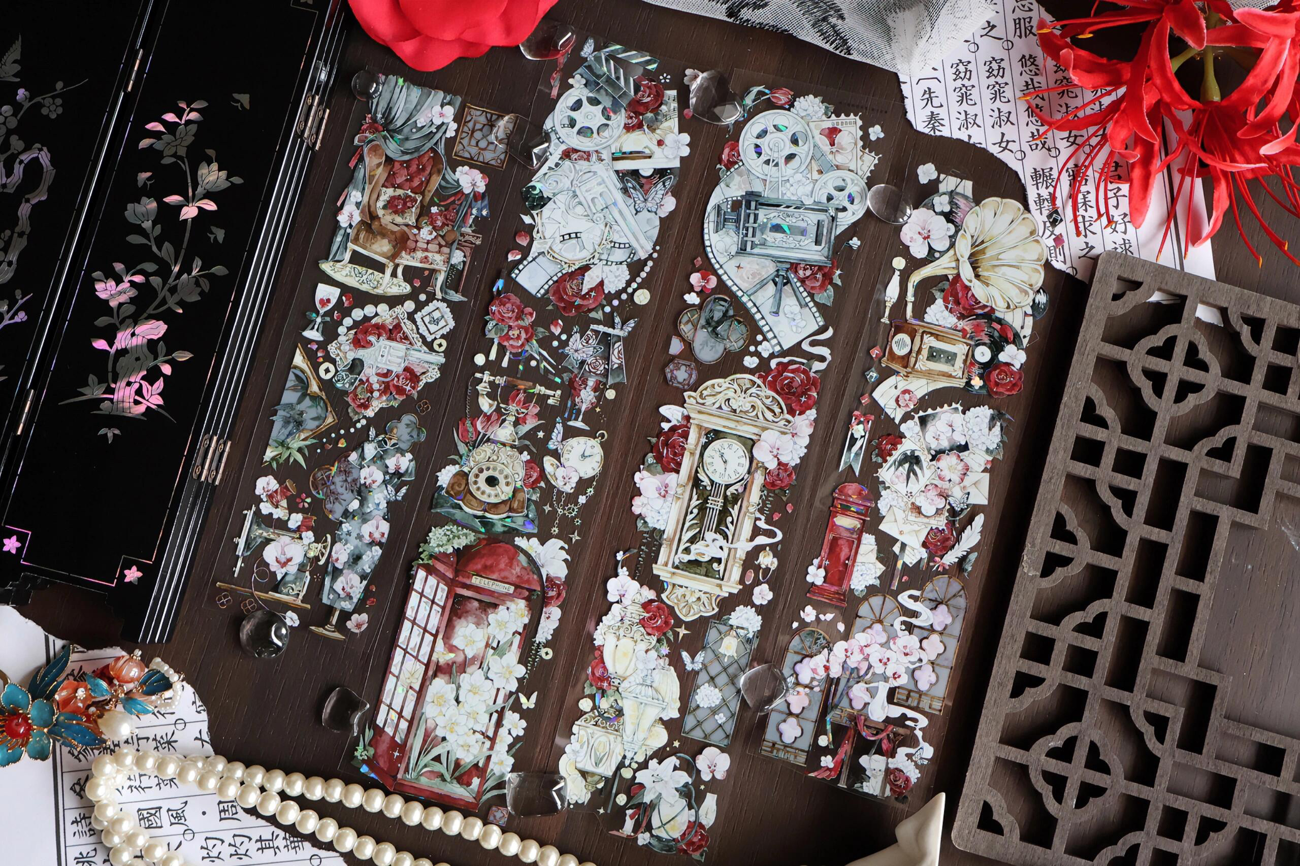 糖分超标南洋往事背景挂钟古典风咕卡手机壳背卡贴纸拼贴胶带分装