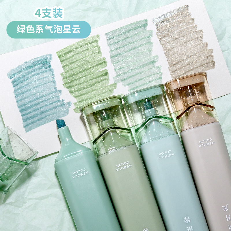 集物社闪光荧光笔高颜值彩色记号高中学用大容量划重点标记笔7261