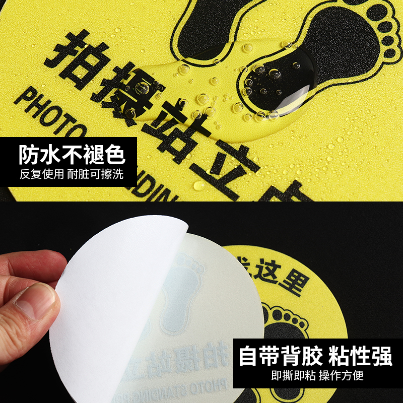 圆形防滑耐磨脚丫标识幼儿园学校医院定点指示地贴工厂车间餐厅排队脚印引导地面地板贴纸定位提示贴标志定制