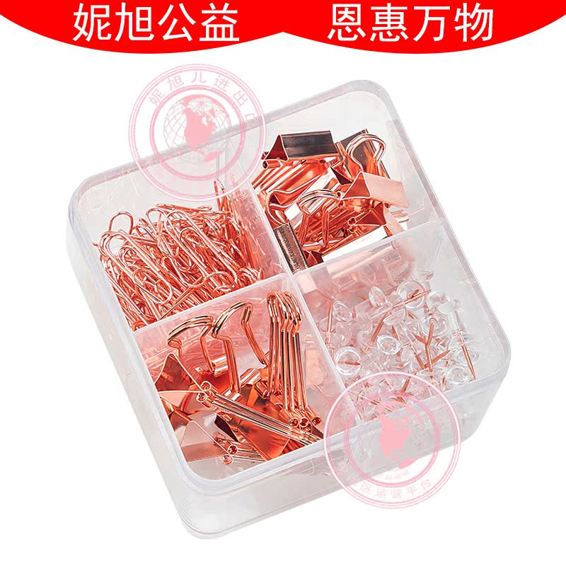 得力78551组合套装(玫瑰金)回形针工字钉和票夹组合装办公4盒