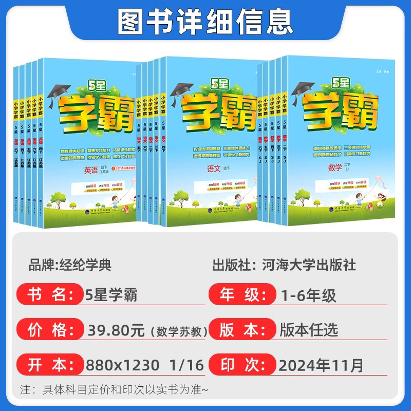 25春五星小学学霸一二年级三年级四4五5六上下册语文数学英语人教版北师江苏教版练习册教材专项提优大试卷课时作业本同步训练经纶