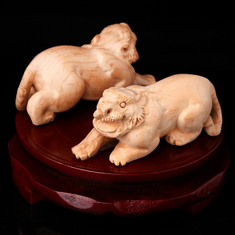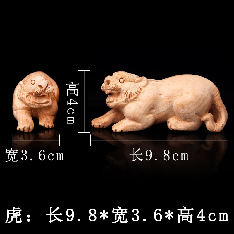 老虎摆件客厅办公室装饰品桌面年本命年礼物桃木雕实木原色吉祥物
