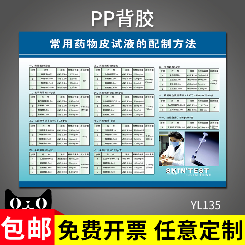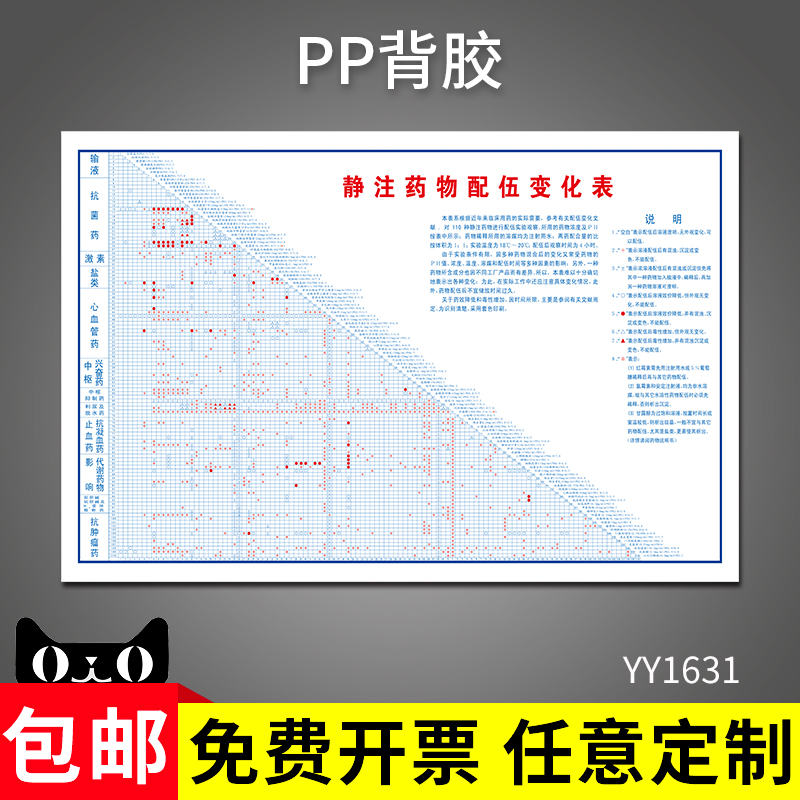 常用药物配伍禁忌简表新版输液表中西药注射临床配伍检索表常用药物皮试液配置表药品物配置表墙贴纸标识定制