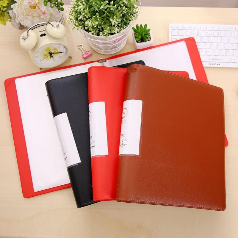 a4/100资料册插页文件夹4孔O型活页60袋40皮质30皮面定制logo