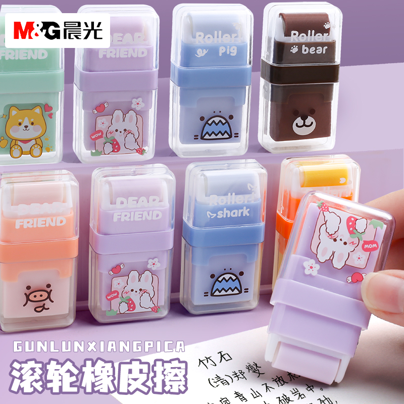 晨光滚轮橡皮擦小学生专用创意卡通可爱安全无毒无碎少屑擦得干净不留痕一年级儿童幼儿园2比4b象像皮檫文具