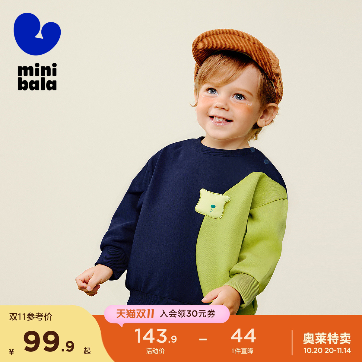 【不易变形】男女童宝宝柔软亲肤舒弹有型宽松撞色长袖卫衣秋新款