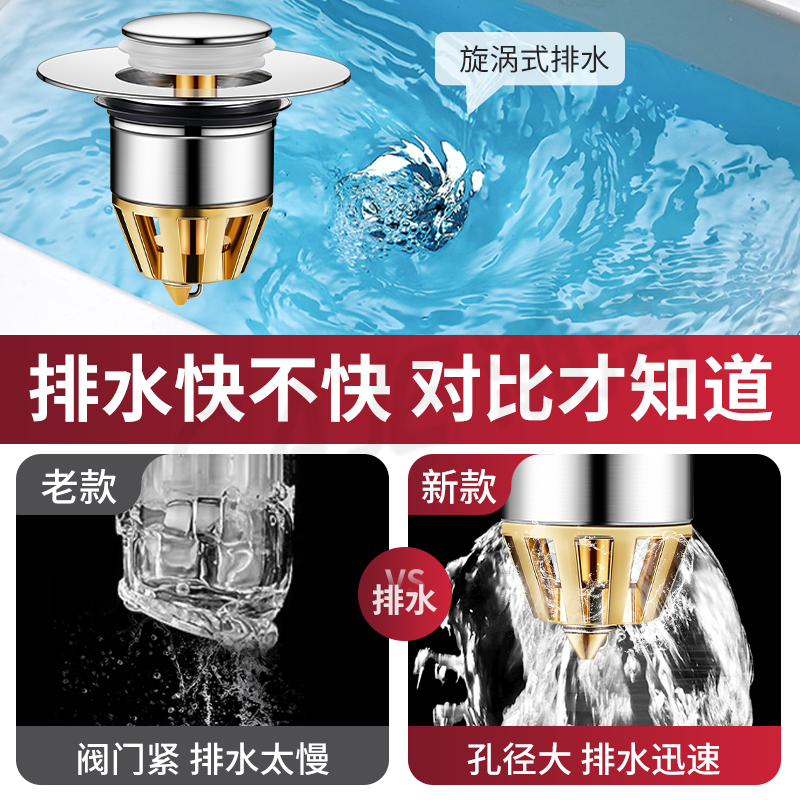 不锈钢洗脸盆漏水塞洗手水池面盆通用弹跳芯下水器防臭返味过滤网