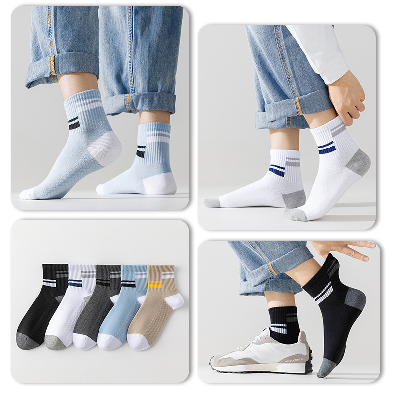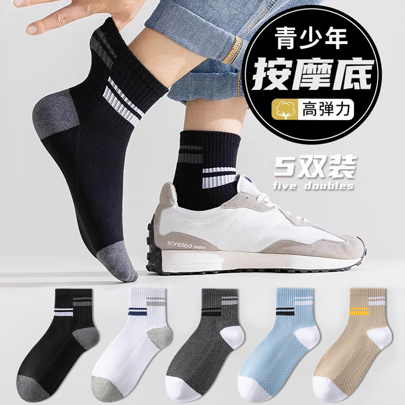 防臭运动袜子男款纯棉中筒袜秋季抗起球全棉男士青少年长袜吸汗