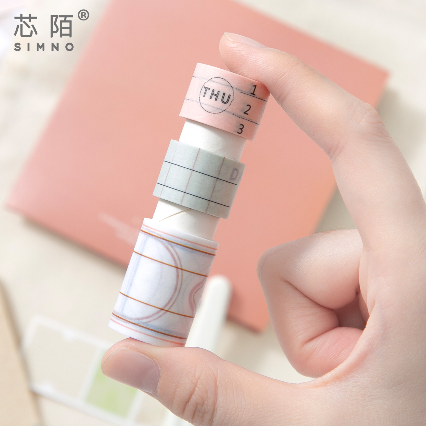 芯陌 3卷装盐分胶带 手撕实用基础手账生活diy打底装饰拼贴纸