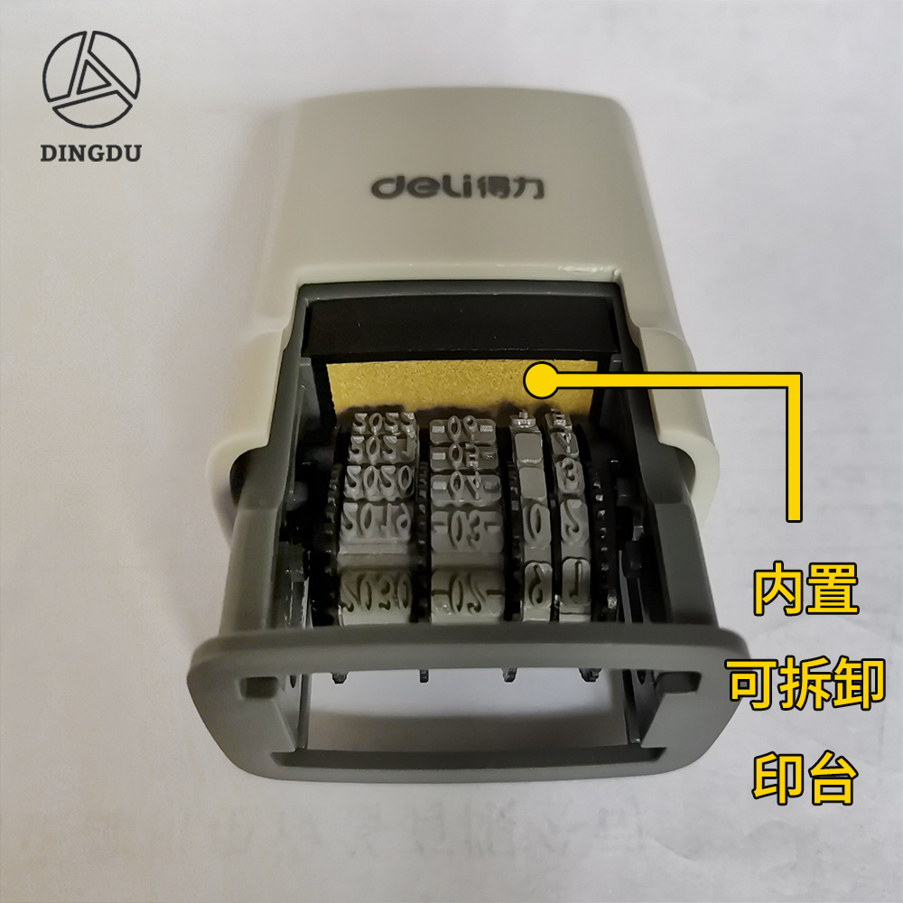 得力手动生产日期印章打码机 内置印台自动回墨可调年月日期章办