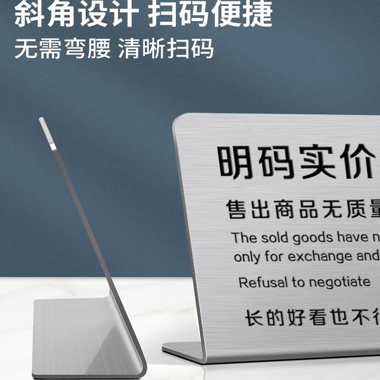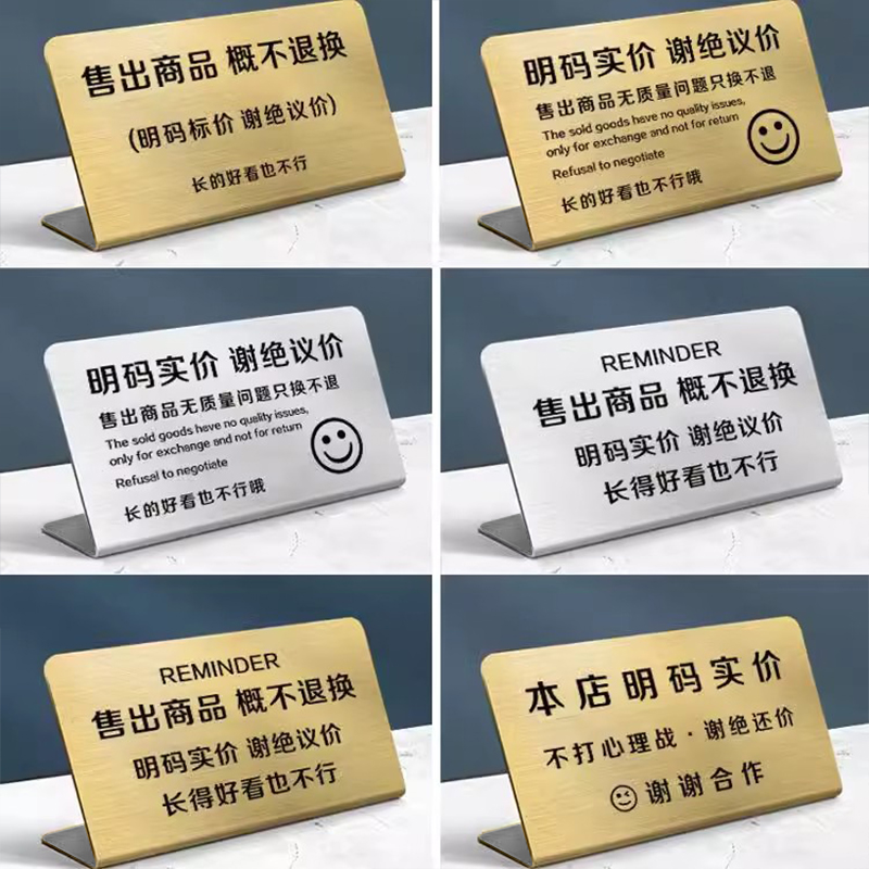 谢绝还价提示牌不锈钢展示牌摆台收银台摆件不讲价桌面标识牌明码标价不抹零概不议价高级服装店定制牌子制作