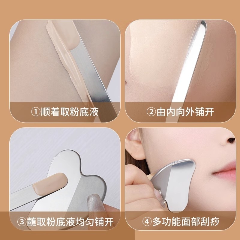 新款美容刮脸板粉底铲化妆调色板面膜刷粉底液刮刀曲面挖勺不锈钢