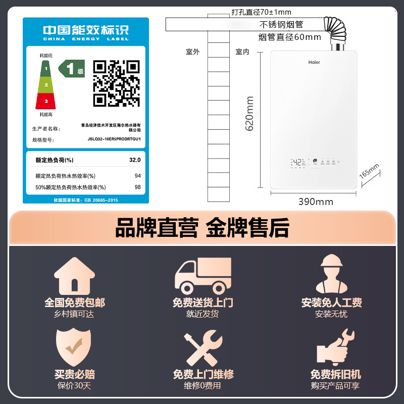 海尔燃气热水器一级能效18L20升增压零冷水恒温家用天然气款