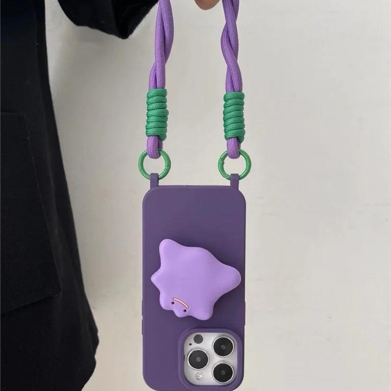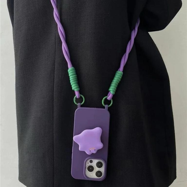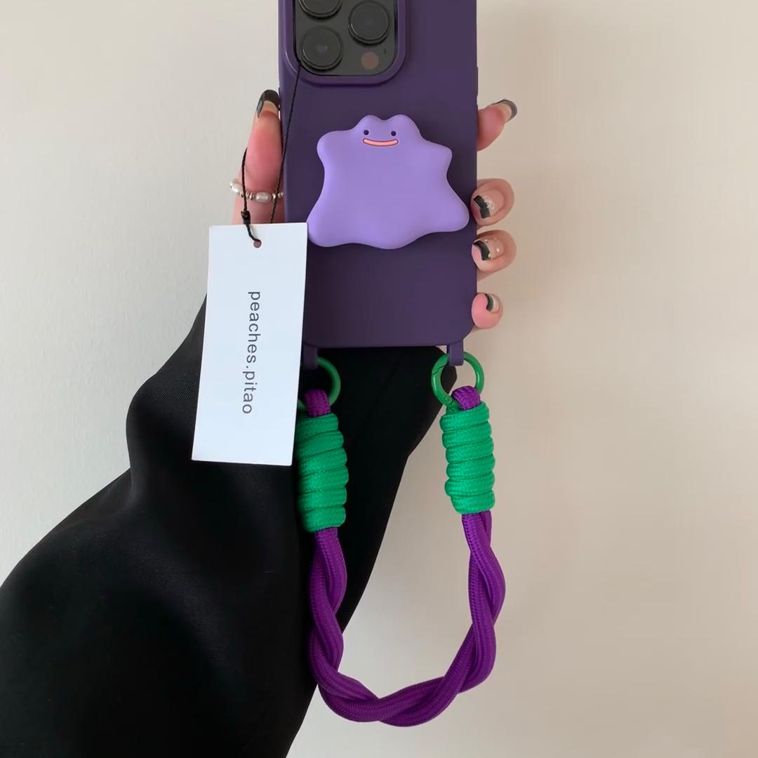 赵露思同款支架使用苹果15手机壳简约高级紫纯色iphone13promax双挂孔保护壳12硅胶软11万能背带挂绳14手提XS