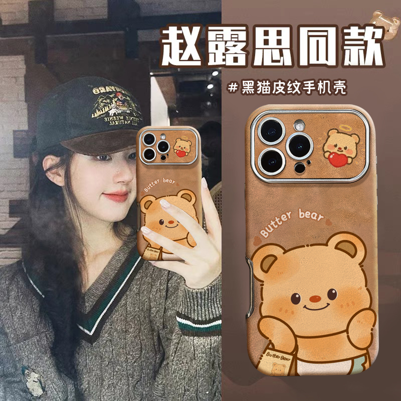 适用苹果16promax秋冬手机壳iphone16小羊皮质15plus小众不撞款14pm黄油小熊13全包镜头12防摔硅胶软保护套C