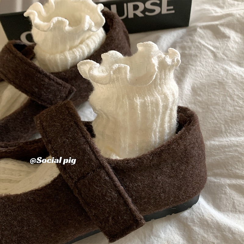 羊皮版复古玛丽珍鞋女方头秋冬季加绒保暖毛毛棉鞋平底晚晚单鞋女