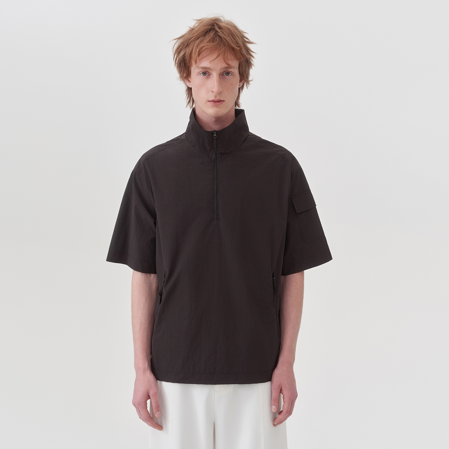 DUPU 半门襟立领宽松短袖 透气网眼内衬机能感穿搭轻薄男装