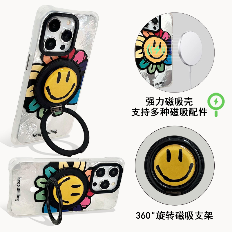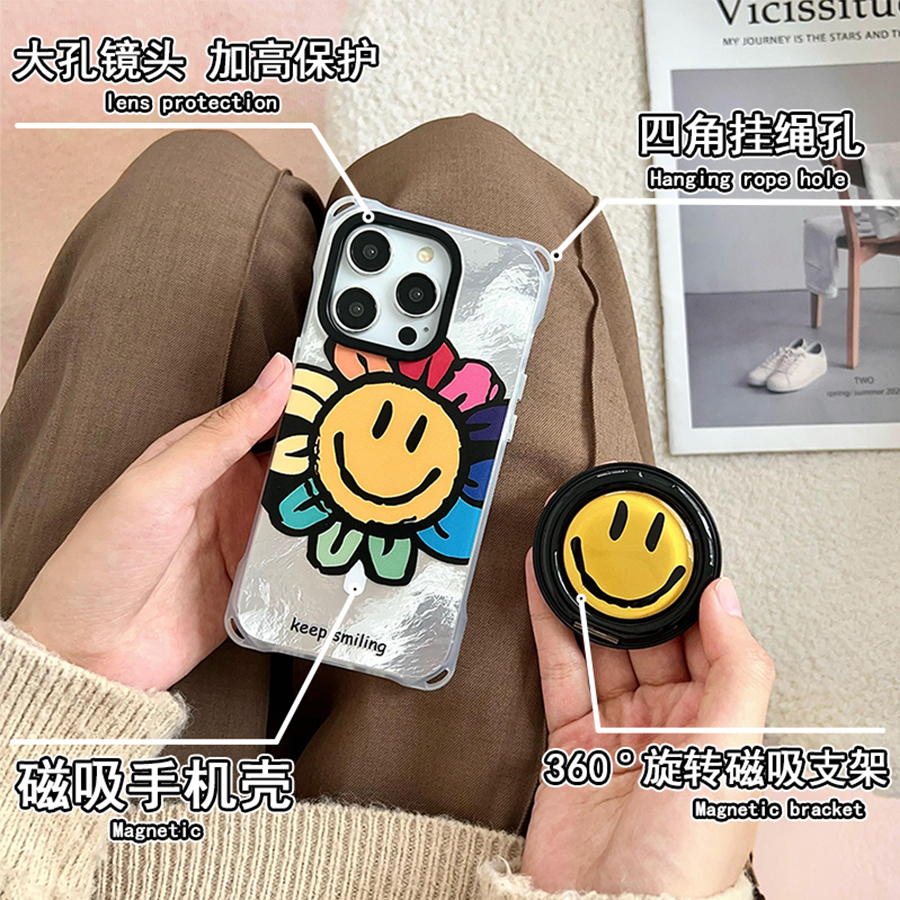 ins太阳花磁吸旋转支架挂绳可斜挎手机壳适用iPhone16PM华为mate60pro+手提手腕带挂绳PURA70防摔FINDX8硬壳