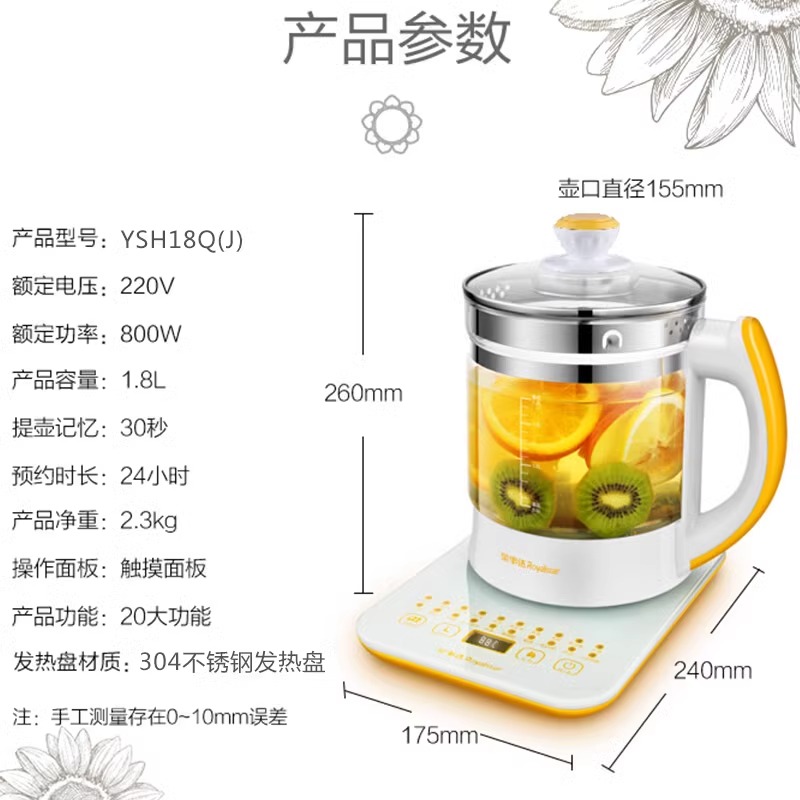 九阳全玻璃养生壶家用恒温多功能小型办公室炖煮花茶烧水壶纯玻璃